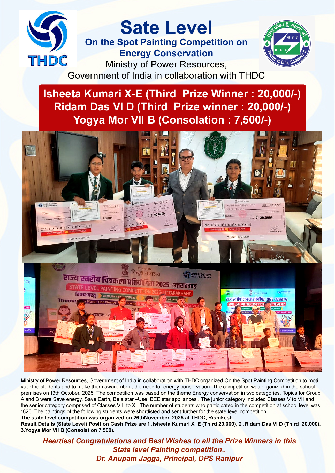 State level Prize Winners of THDC Energy Conservation Art Competition 2025