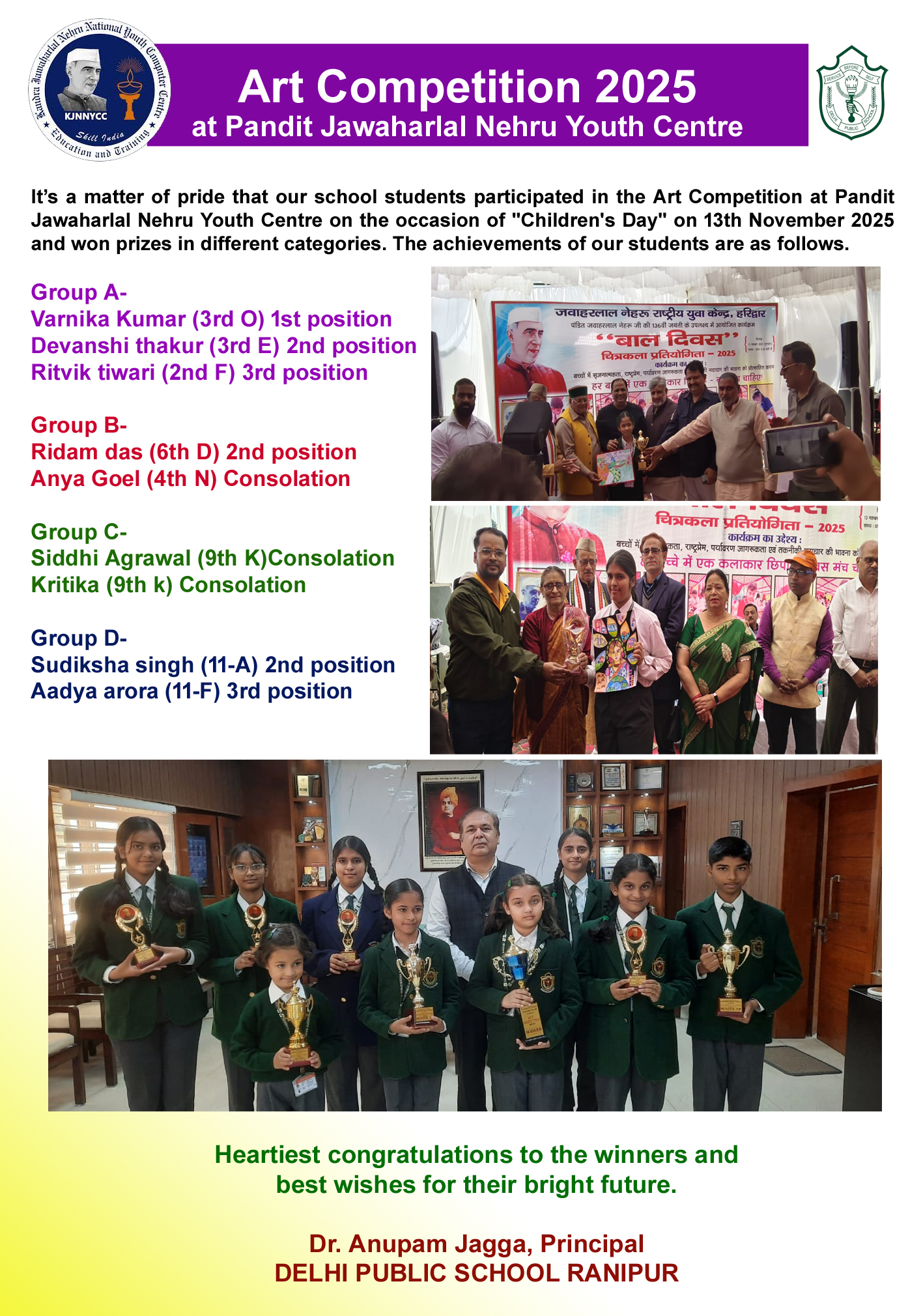 Prize Winners and Participants @ Bal Diwas Nehru Yuva Kendra
