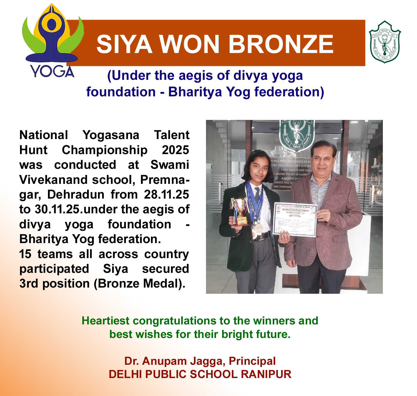 Siya Won Bronze in Yoga