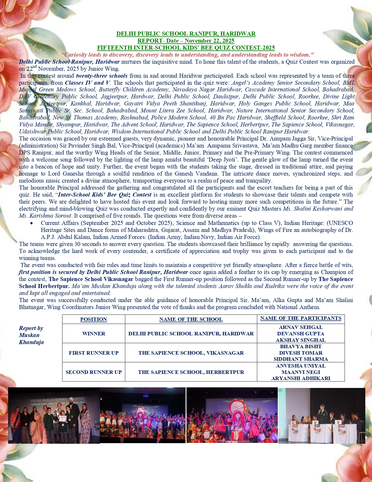 JW REPORT ON FIFTEENTH INTER-SCHOOL KIDS' BEE CONTEST-22-NOV-2025