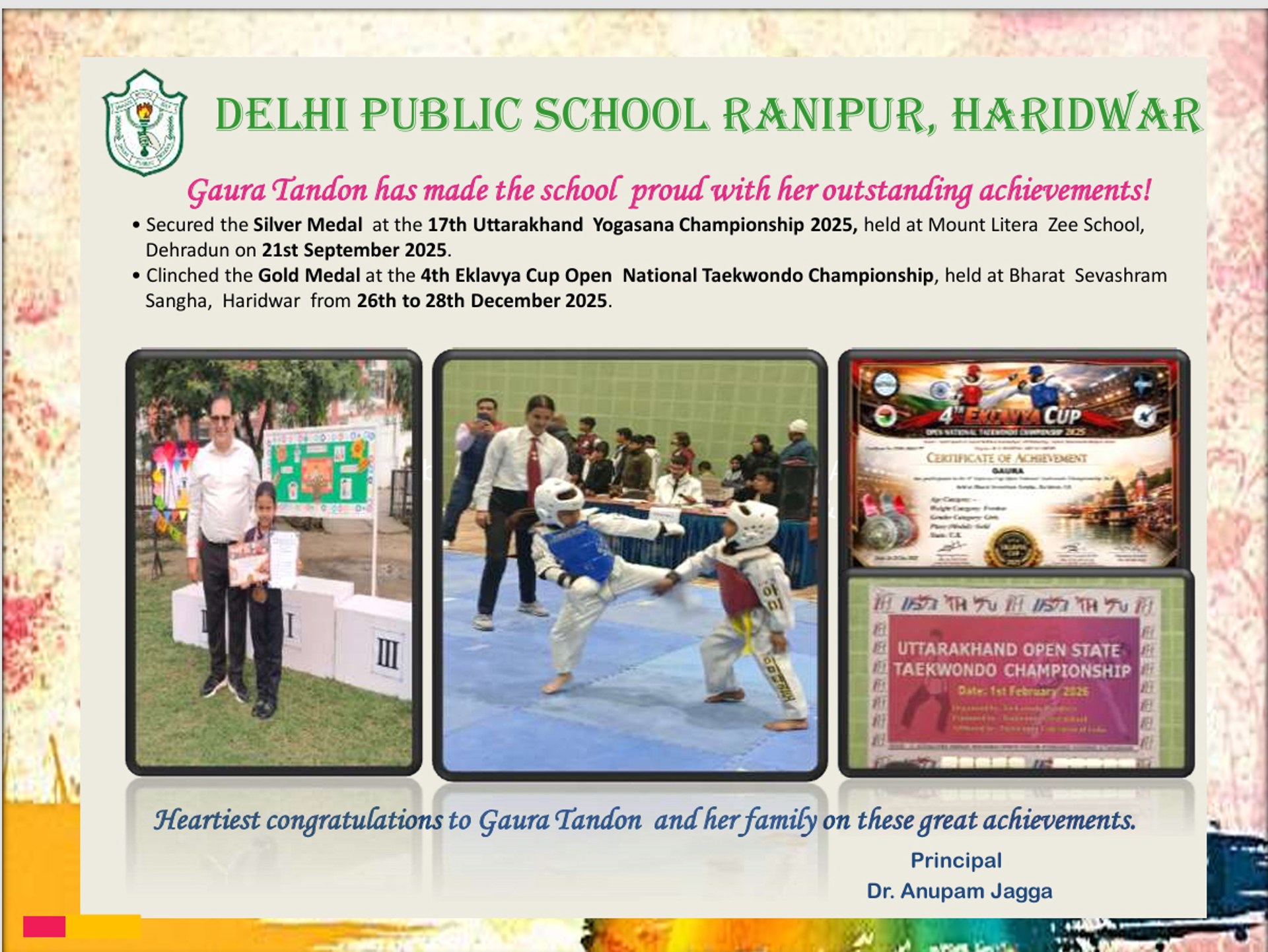 Achievement in Yogasana and Taekwondo-Gaura Tandon PPW